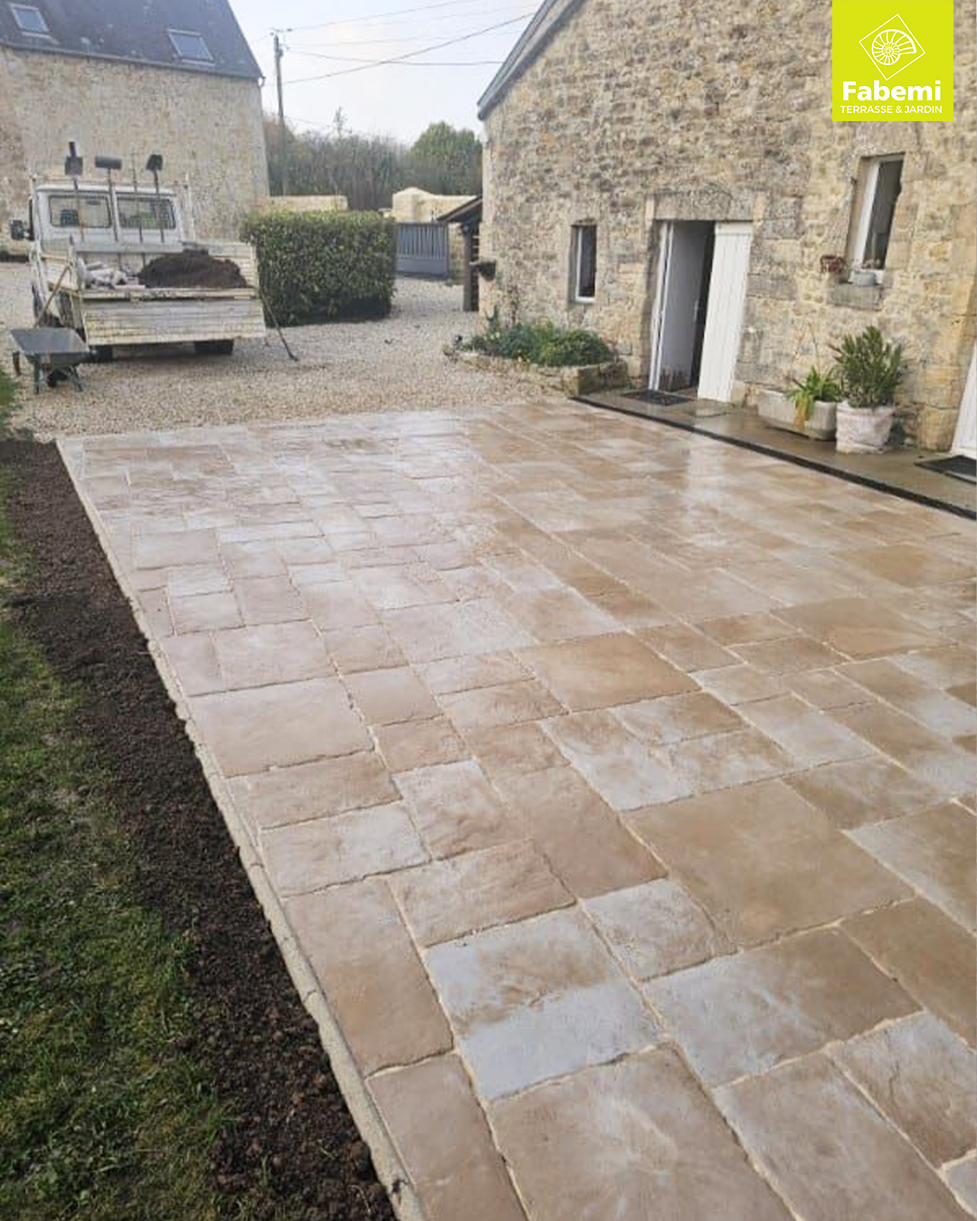 Mise en lumière de ce chantier réalisé avec notre dallage MANOIR FABEMI