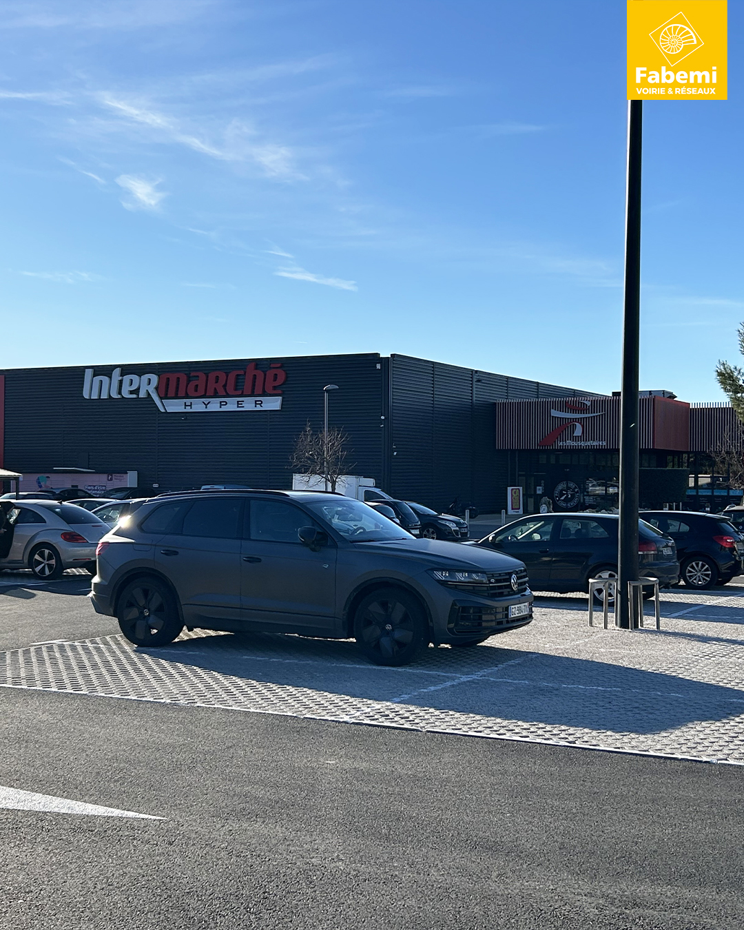 Belle mise en lumière de notre solution de dalle drainante DALPARKING FABEMI sur ce chantier de 3 000 m² à l’Intermarché de Courbessac. 🚗💨