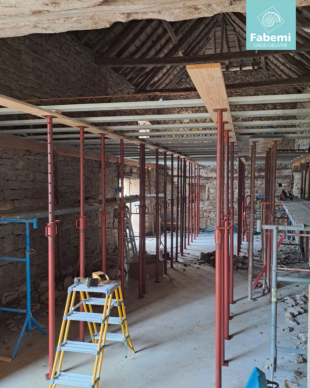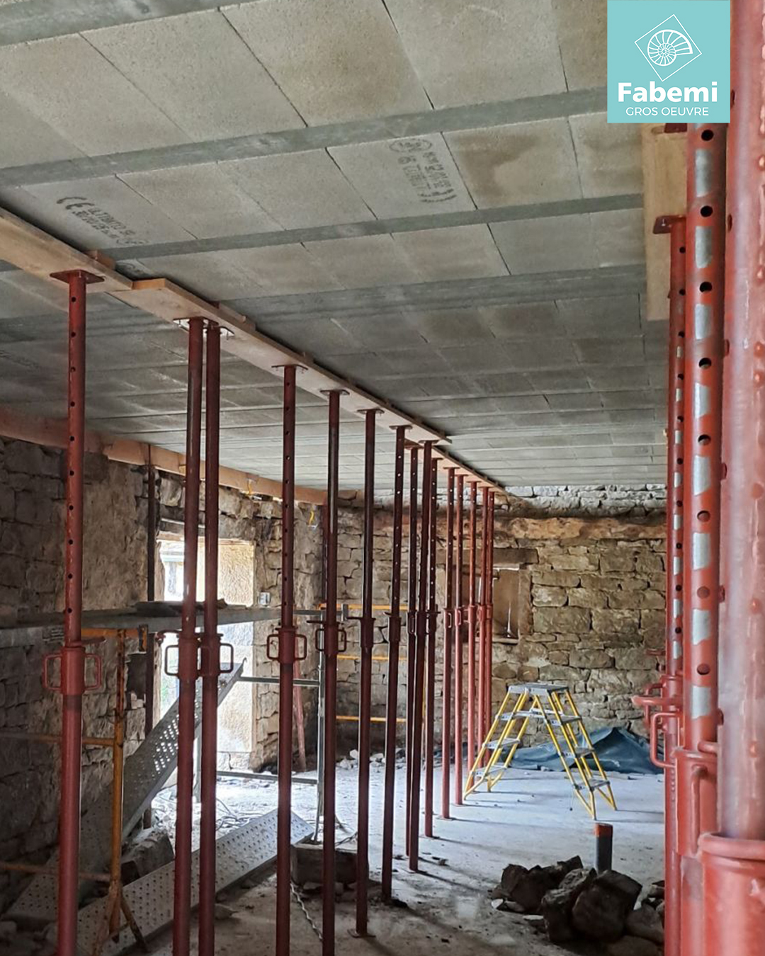 Belle réalisation en cours sur le secteur de Parisot (82160) avec la pose d’un plancher poutrelles FABEMI + entrevous bétons, mis en œuvre par l’entreprise M.S.N – Maçonnerie NATTES Sylvain.