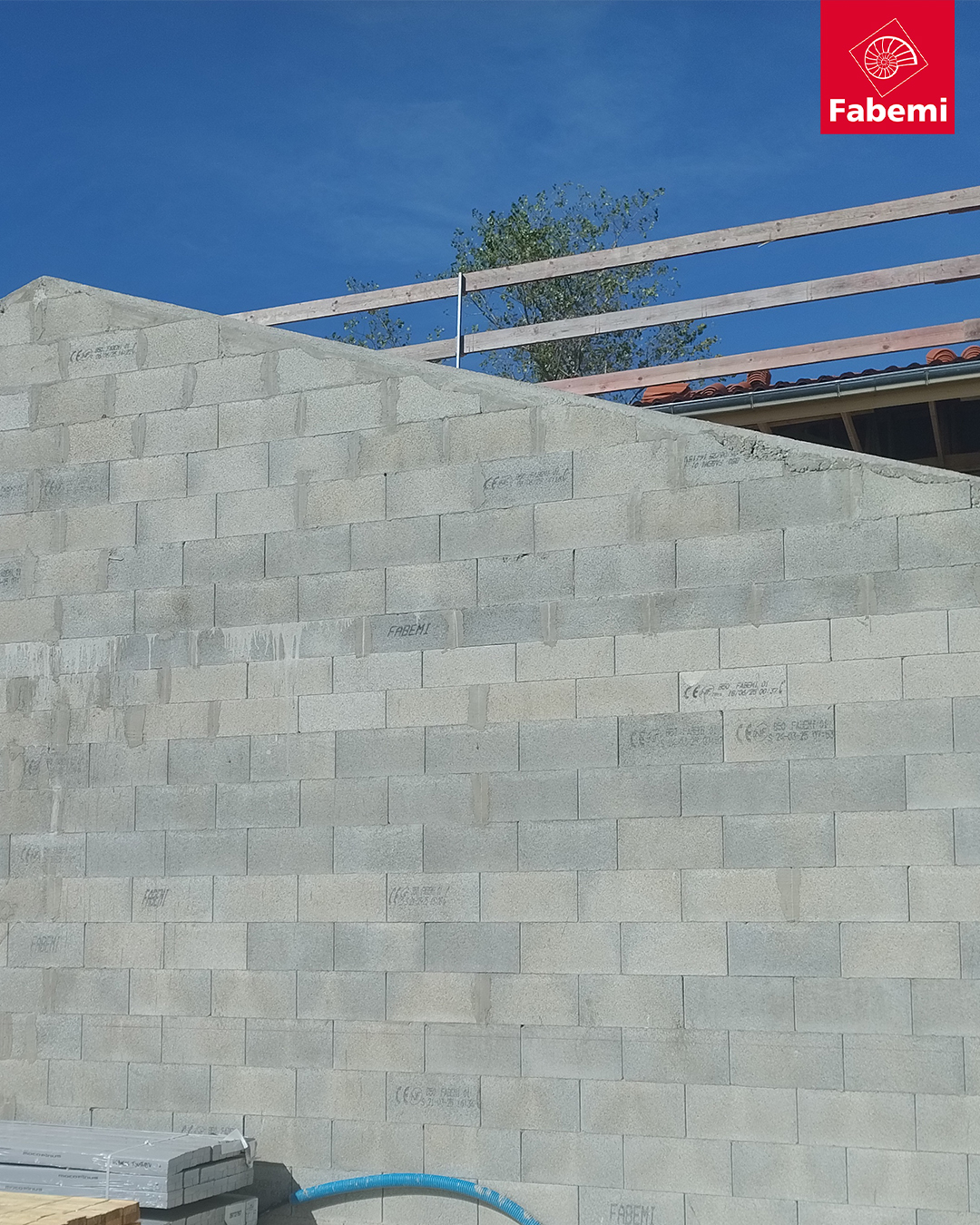 Le procédé FABTHERM® MIX FABEMI est un système de maçonnerie qui se compose de blocs en béton creux FABEMI pour les parties courantes des murs et de blocs isolants Fabtherm® Air 1.1, positionnés stratégiquement aux premiers et derniers rangs, en contact avec les planchers.