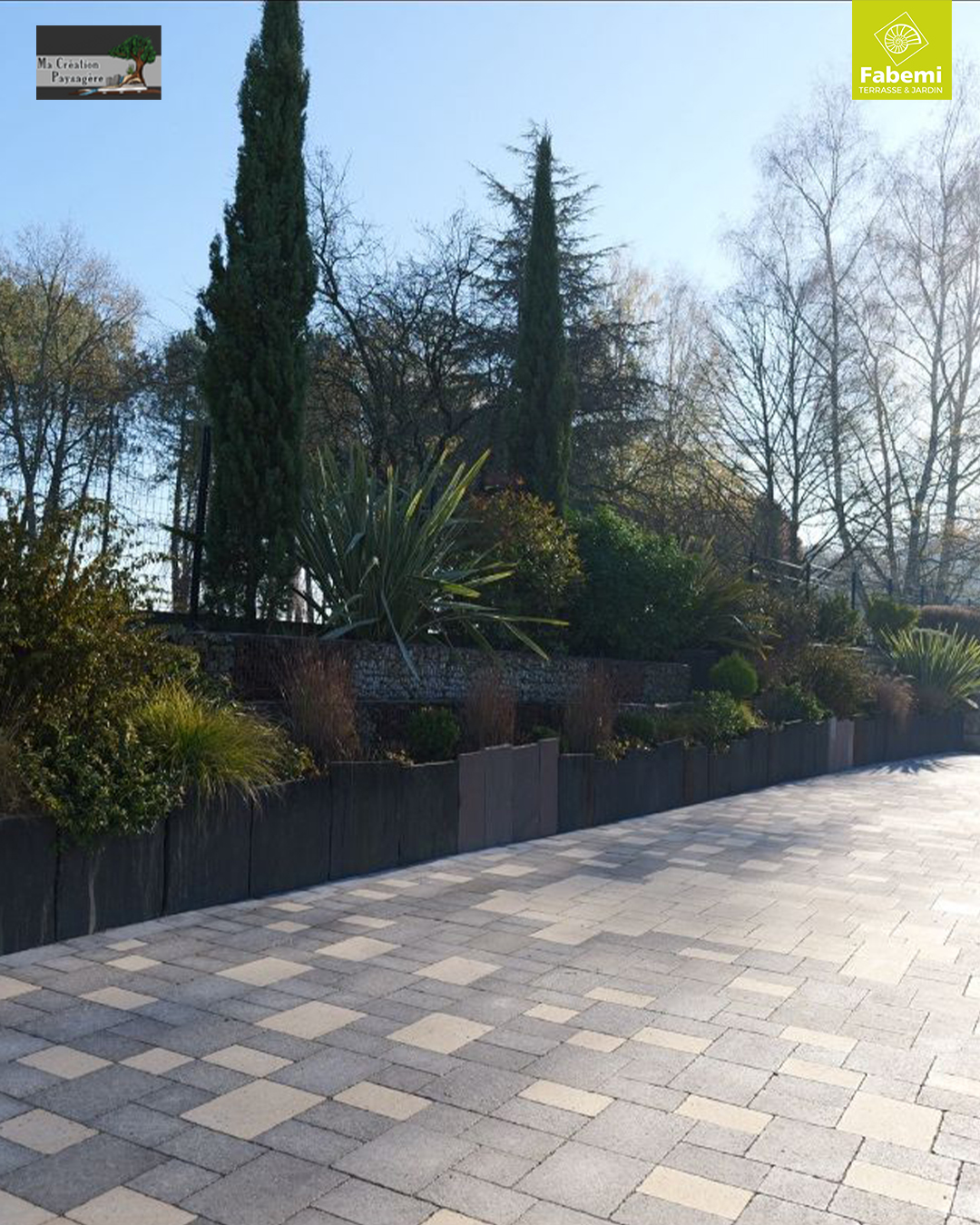 L’Ă©lĂ©gance du pavĂ© vieilli martelĂ© FABEMI mise en Ĺ“uvre par Ma CrĂ©ation Paysagère. Mael Bruseau et ses collaborateurs ont rĂ©alisĂ© un travail remarquable, transformant ce jardin en un vĂ©ritable Ă©crin.