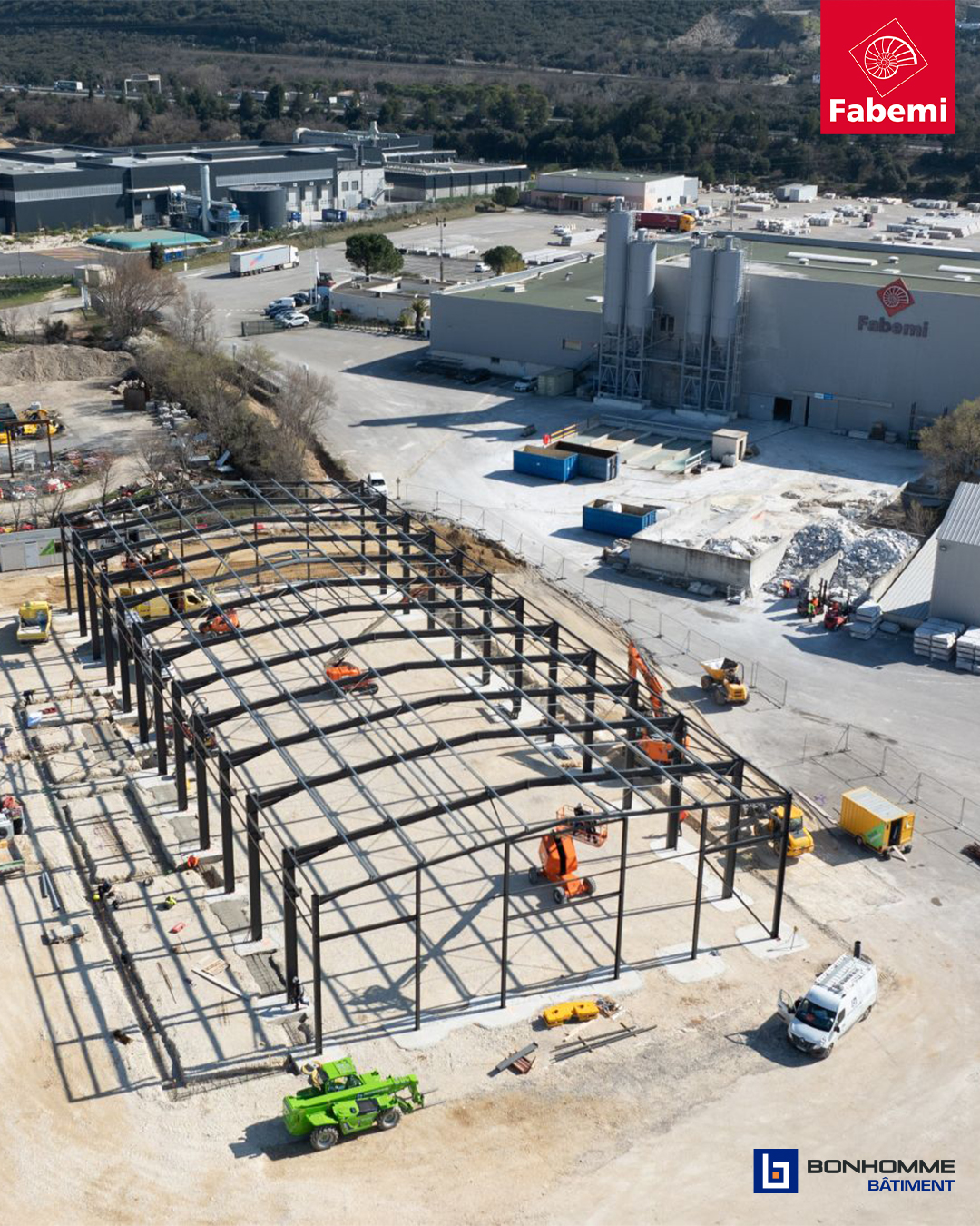 Dernier en date, notre nouveau bâtiment de 1 560 m² et 250m² de bureaux, sur notre site Fabemi de Donzère Éoliennes ! (26)