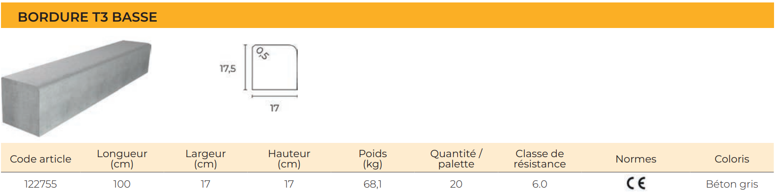 La bordure T3 basse permet de garder la délimitation du trottoir tout en baissant la hauteur.