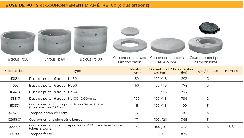 > Buse de puits diamètre 100
