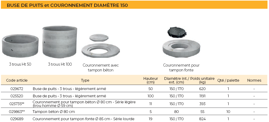 Buse de puits diamètre 150