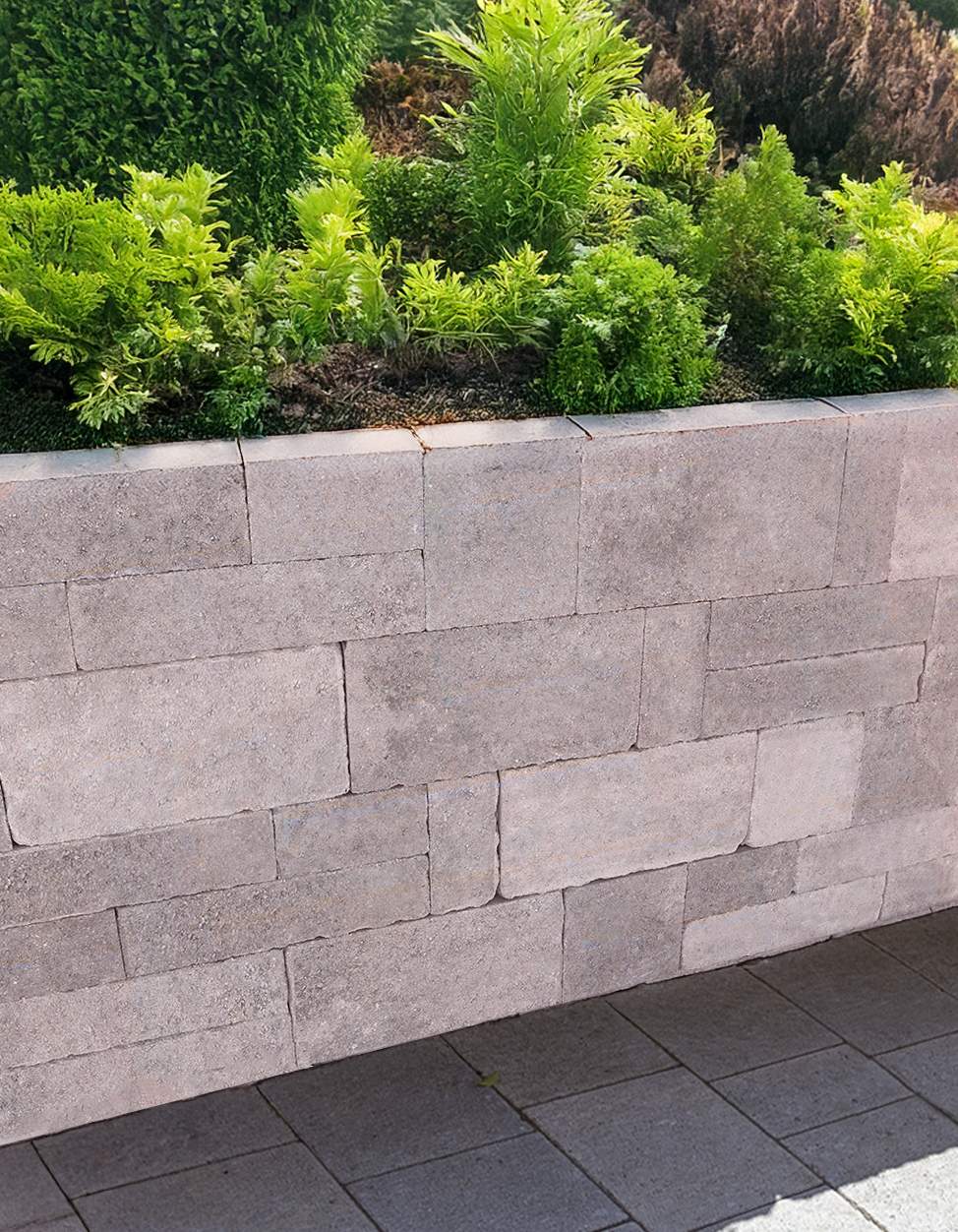 Le muret multi-formats en béton Puygiron est proposé en finition vieillie martelée sur 1 face. Ses éléments ont une largeur commune de 15 cm pour une compatibilité parfaite entre les différents formats, à poser horizontalement ou verticalement. L’alternance aléatoire des blocs crée un rendu naturel et rythmé, et permet une multitude de combinaisons, évitant la monotonie. Chaque palette permet de réaliser 3,2 m² de muret. Idéal pour les aménagements paysagers durables et esthétiques.